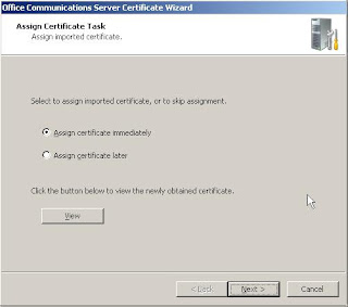 When done we want to assign certificate immediately, you can view the certificate now if you wish. Then click Next.